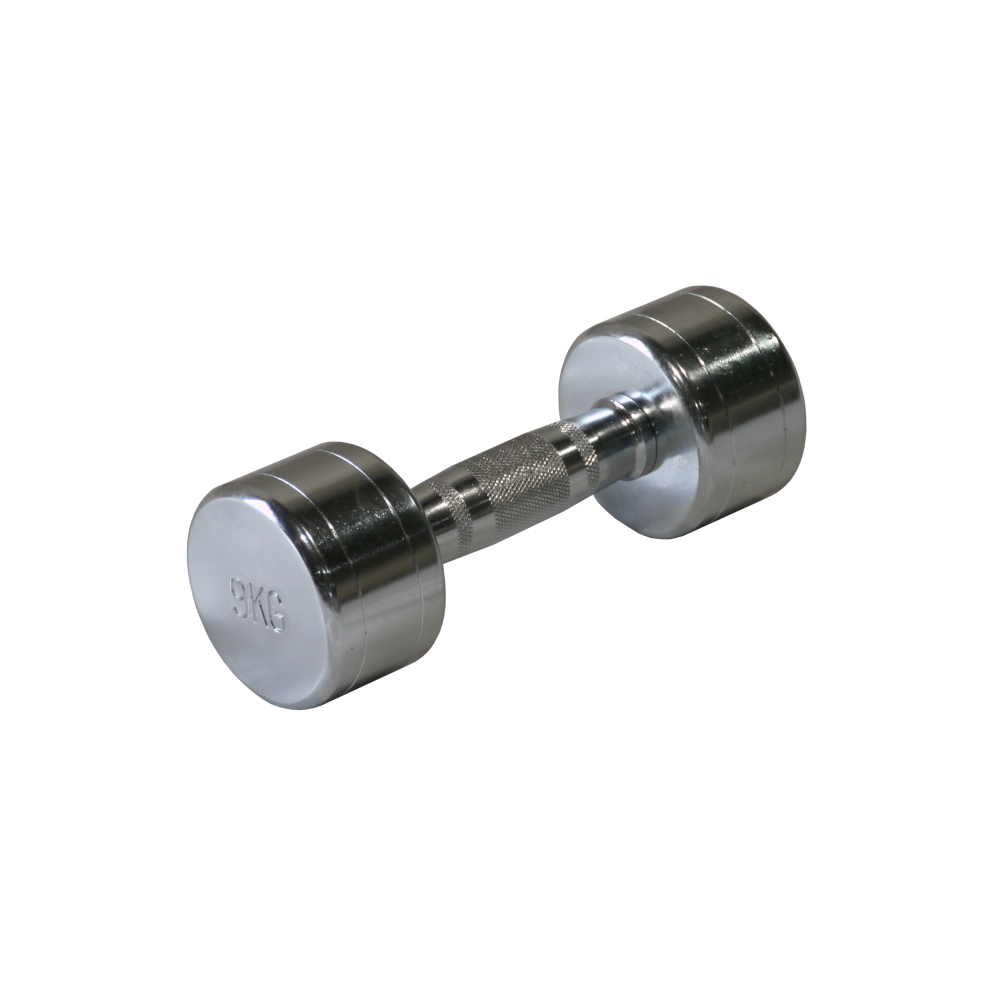 Hantla chromowana 9 kg AC-1519 – hantle od 1 kg do 10 kg ze skokiem co 1 kg. Wykonane z wytrzymałego materiału. Stosowane w profesjonalnych siłowniach, bardzo często w strefie damskiej.