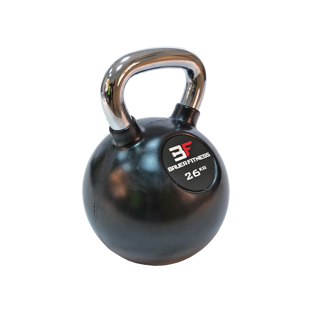 Kettlebell ogumowany 26 kg AC-12511 – wysokiej jakości, wyprodukowane z wytrzymałych materiałów. Dostępne w wariantach od 2 kg do 40 kg ze skokiem wagi co 2 kg. Świetnie sprawdzają się w treningu grupowym. Ergonomiczny uchwyt sprawia, że kettlebell świetnie leży w dłoni podczas wykonywania różnorodnych ćwiczeń, nie blokuje się i swobodnie obraca. Naklejka z wagą umieszczona jest w takim miejscu, aby użytkownik nie miał problemu z zidentyfikowaniem właściwej wagi.Stanowi niezbędny element wyposażenia siłowni, box'u owego oraz klubu fitness