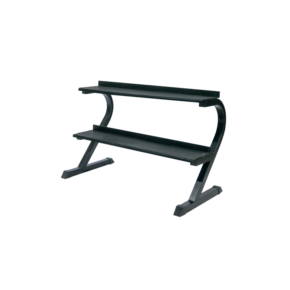 Stojak na kettlebells AC-130 – prosty i bardzo praktyczny dwupoziomowy stojak na obciążenia kettlebells. Przeznaczony do użytku komercyjnego. Powierzchnia półki pokryta jest antypoślizgowym tworzywem. Stojak może służyć do przechowywania hantli.