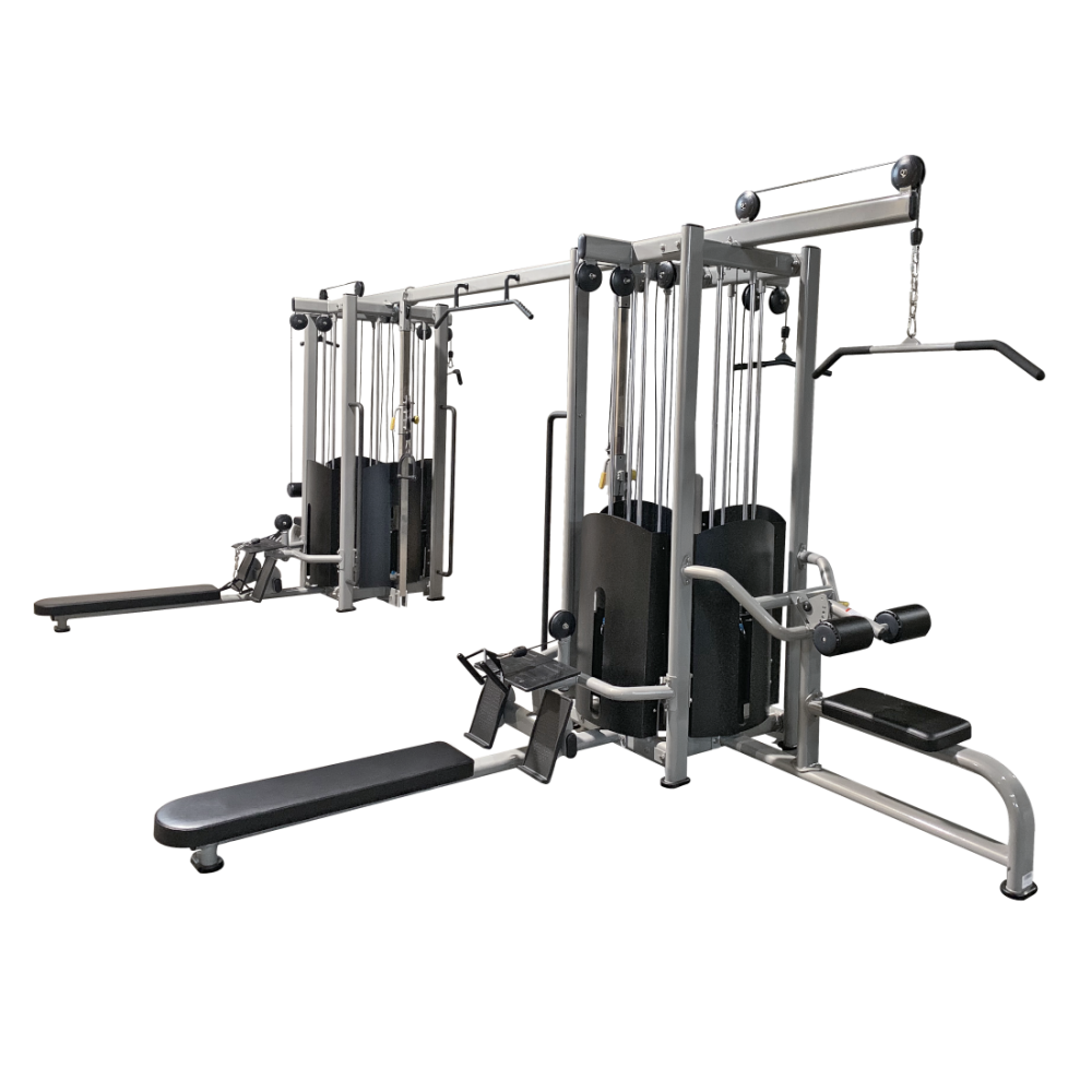 Brama Wielofunkcyjna BF 4+4 PLM-561 – to niezastąpione urządzenie jest obowiązkowym wyposażeniem każdej profesjonalnej siłowni. Służy do treningu mięśni klatki piersiowej, pleców, nóg, barków, brzucha oraz ramion. Brama składa się dwóch wież, każda wieża ma cztery stanowiska. Docelowo urządzenie ma osiem stanowisk treningowych. W tym między innymi dwa stanowiska z ławką do treningu mięśni grzbietu – przyciąganie w siadzie, dwa stanowiska z ławką do treningu pleców- ściąganie z góry w siadzie, stanowisko do treningu bicepsów i tricepsów, stanowisko do treningu klatki piersiowej. Każde stanowisko wyposażone jest w stos o wadze 60 kg złożony z 5 kg sztabek i wytrzymałych linek o grubości 6mm. Istnieje możliwość zwiększenia ciężaru stosu. Wysokość reguluje się na długości całej prowadnicy za pomocą bolca sprężynowego. W centralnej części bramy zamontowane są dodatkowe wielofunkcyjne uchwyty do podciągania. W zestawie są dwa uchwyty pojedyncze.