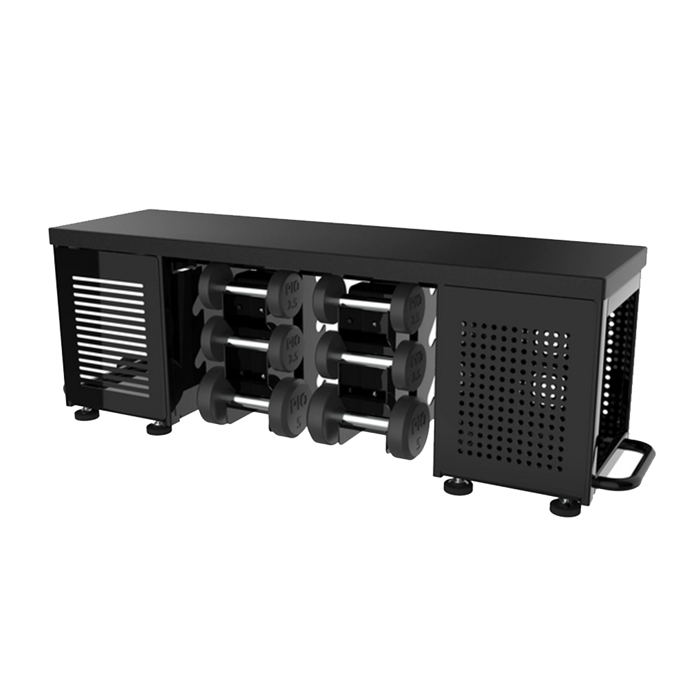 Przestrzenie znajdujące się dwóch stornach ławki są w stanie pomieścić resztę waszych akcesoriów treningowych takich jak kettlebells