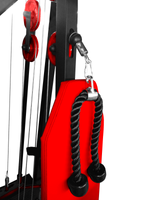 Gałąź wyciągu z doczepionym drążkiem linowym pozwala na trening mięśni naramiennych oraz tricepsa.Modlitewnik połączony z wyciągiem