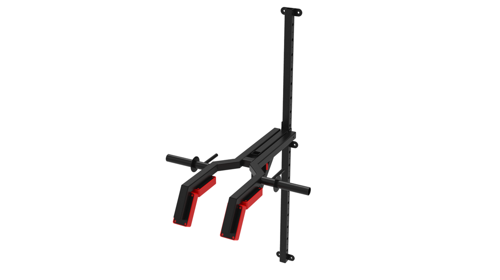 Przed rozpoczęciem treningu należy ustawić ramię maszyny na odpowiedniej wysokości - tak by uchwyty spoczywały prostopadle do ściany. Następnie należy ustawić bolec zabezpieczający w jednym z otworów regulacji wysokości - pozwoli on bezpiecznie opuścić konstrukcję w razie nagłej potrzeby. Następnie należy się upewnić, że bolce zabezpieczające całą konstrukcję są właściwie umieszczone, a cała konstrukcja unieruchomiona. Kolejnym krokiem jest założenie obciążenia talerzowego na bolce urządzenia (fi50) i należyte ich zabezpieczenie za pomocą zacisków (na ten moment nie są one dostępne w zestawie z urządzeniem, należy je dokupić oddzielnie).