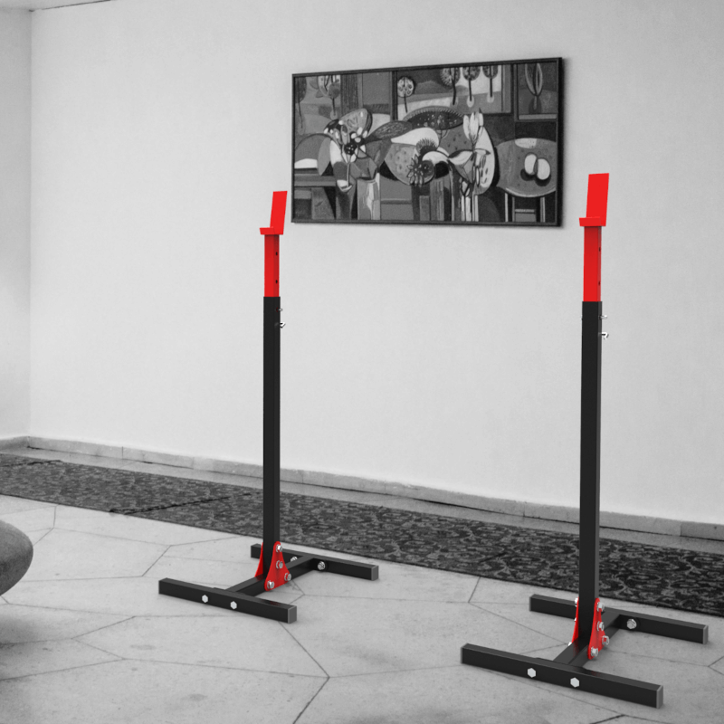- Regulacja na 8 poziomach: Dopasuj wysokość stojaków co 85mm – niezależnie, czy robisz przysiady, wyciskasz sztangę, czy trenujesz biceps.