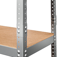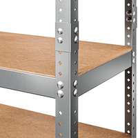 Dodatkowe otwory montażowe rozmieszczone są po dwóch płaszczyznach kątownika równo na całej długości nogi. Otwory umieszczone w tylnej części służą do przymocowania regału do ściany, zaś boczne otwory wykorzystasz do połączenia kilku regałów ze sobą, co jeszcze bardziej podwyższy ich stabilność.