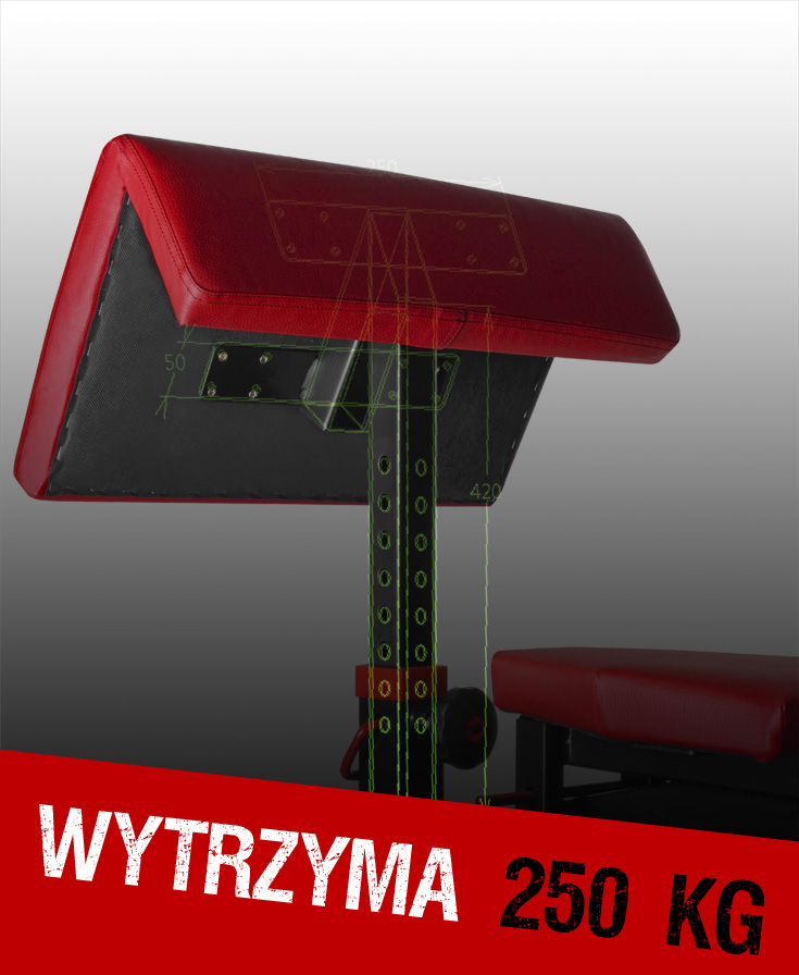 Super wytrzymała, w całości spawana konstrukcja z profilu 40x40x2 mm i blachy 3 mm. | 250 KILOGRAMÓW dla niego to pestka! A teraz sprawdź czy Twój biceps to wytrzyma? |