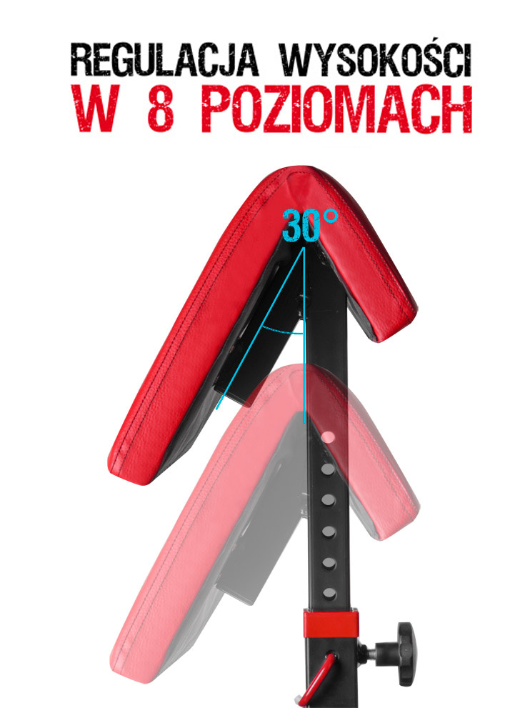 8 stopniowa regulacja wysokości. | Tylko idealnie dobrana wysokość modlitewnika da Ci najlepsze efekty. Wtedy dobrze technicznie pracujesz na idealną rzeźbą i masą. |