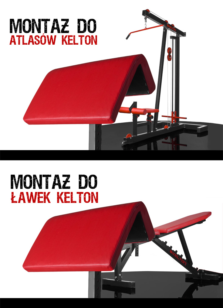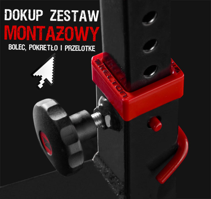 Można zamontować do: | - ławek z linii Kelton HOME i HEAVY (seria Tryton, Spartan, Hunter i Hyperion) - atlasów z linii Kelton HOME i HEAVY (seria Python, Gladius) * do montażu dodatkowych akcesoriów niezbędny jest zestaw w skład, którego wchodzi: pokrętło, przelotka, bolec. |