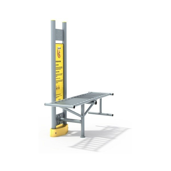 ŁAWKA SIŁOWNIA ZEWNĘTRZNA TRAINER: Wzmacnia mięśnie brzucha.Urządzenie może występować jako pojedyncze lub w parze z innym urządzeniem przeznaczonym do montowania na pylonie (pylon środkowy maszt). Szczególnie polecane w parze z prasą nożną lub prostownikiem pleców.