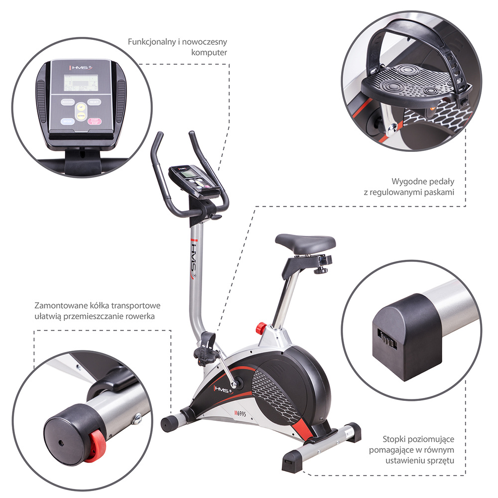 Stacjonarny rowerek magnetyczny M6995 HMS, to sprzęt fitness, który idealnie sprawdzi się podczas treningu w domu.