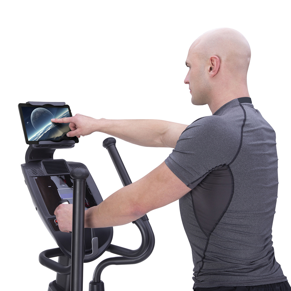 Trenażer eliptyczny posiada nowoczesny komputer z wyświetlaczem LCD. Sterowanie jest bardzo intuicyjne i łatwe. H5815 ma wbudowane łącznie 22 programy. Każdy użytkownik bez względu na poziom wytrenowania, znajdzie odpowiedni program dla siebie. Oprócz tego, komputer zlicza i podaje wszystkie niezbędne podczas treningu parametry. Dodatkowo ten model został wyposażony w uchwyt na urządzenie mobilne, dzięki temu w trakcie treningu bez trudu możemy korzystać np. z tableta.