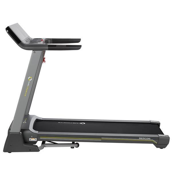 BE5036 to bieżnia elektryczna, wysokiej klasy urządzenie, do ćwiczeń i treningów fitness renomowanej marki HMS PREMIUM. Urządzenie, zostało przystosowane do prowadzenia intensywnego treningu, w warunkach domowych. Jej konstrukcja, zapewnia komfortową przestrzeń do ćwiczeń, a system amortyzatorów, gwarantuje lekkość i sprężystość biegu. Do stworzenia bieżni, zostały wykorzystane materiały najwyższej jakości, co daje gwarancję wieloletniego użytkowania.